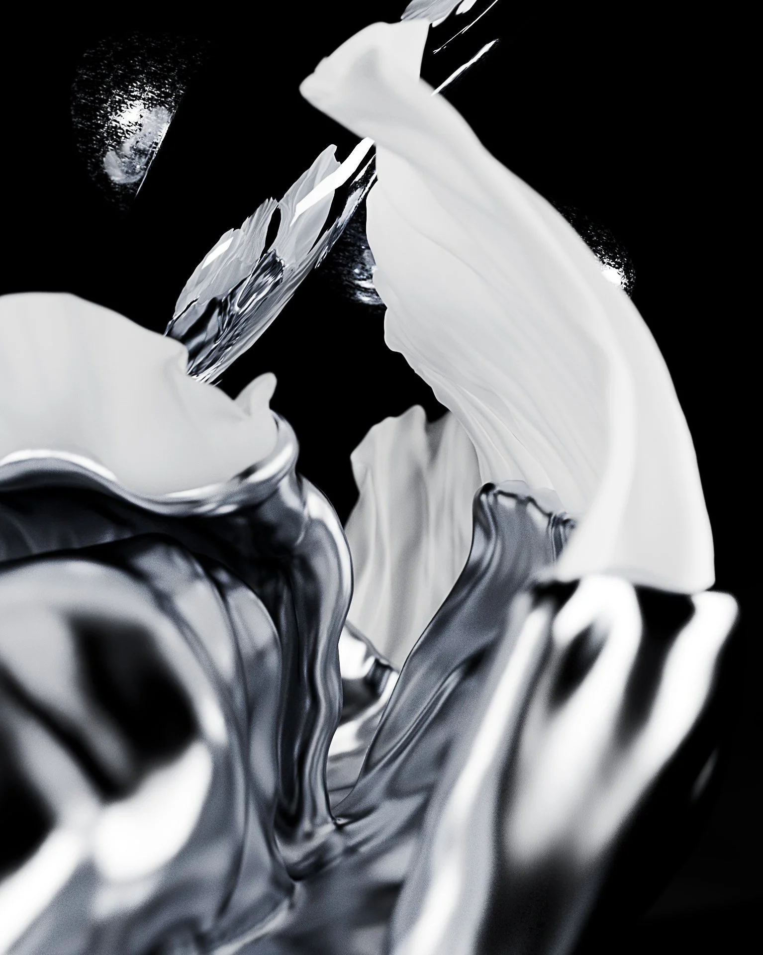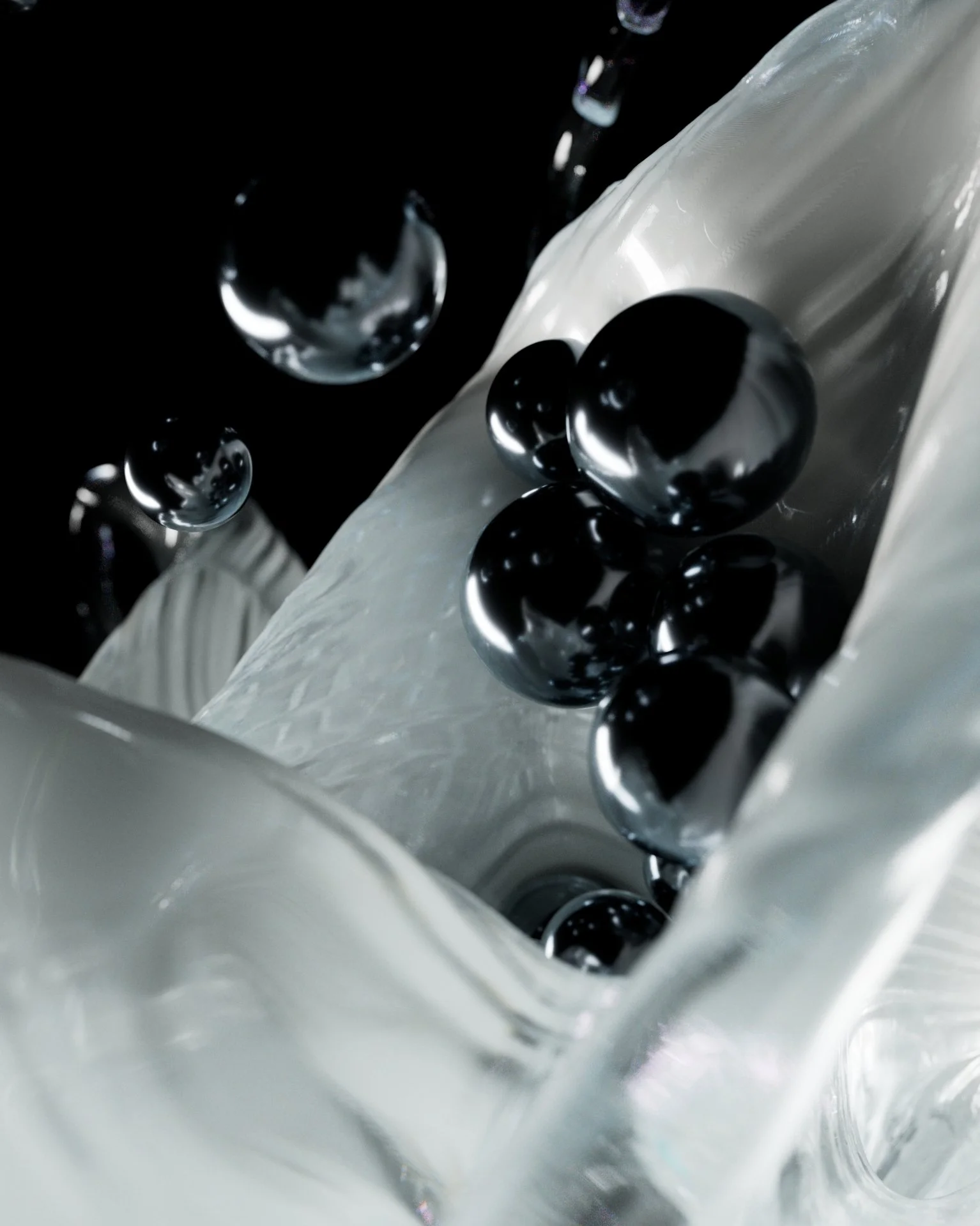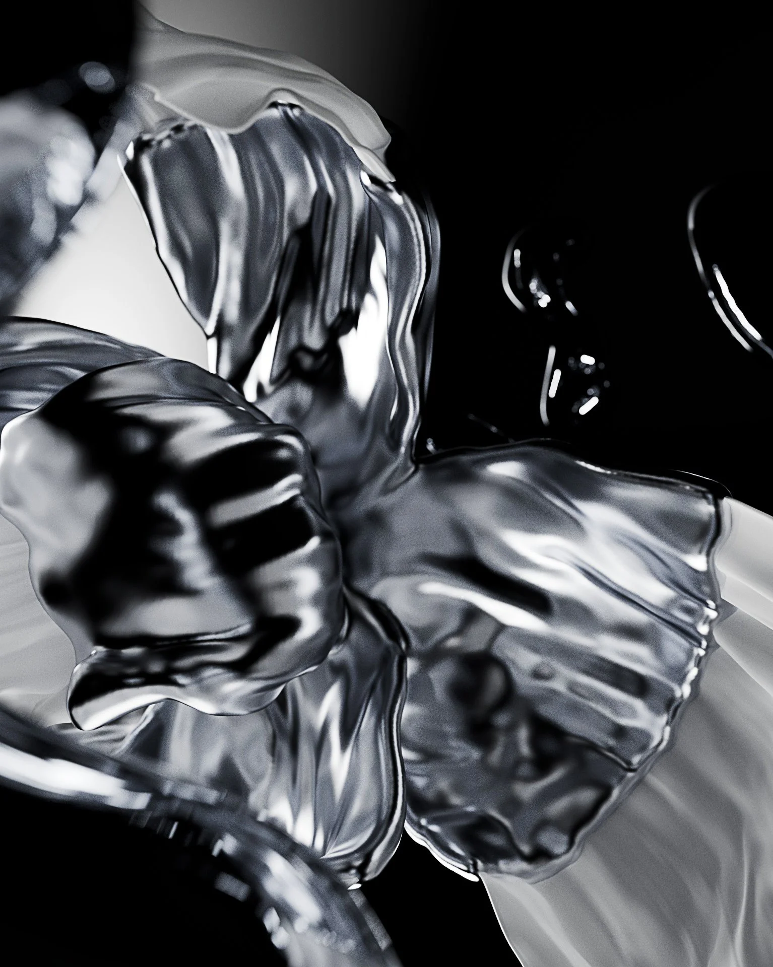 Our approach was inspired by abstract and undefined natural shapes, using forms of the design of a rare and precious object, through soft lines and rigid lines, pearls, diamonds, rubies, metals, fluid movements and mechanical elongations, we wanted to use real world physics to understand what materials could do with our technology.