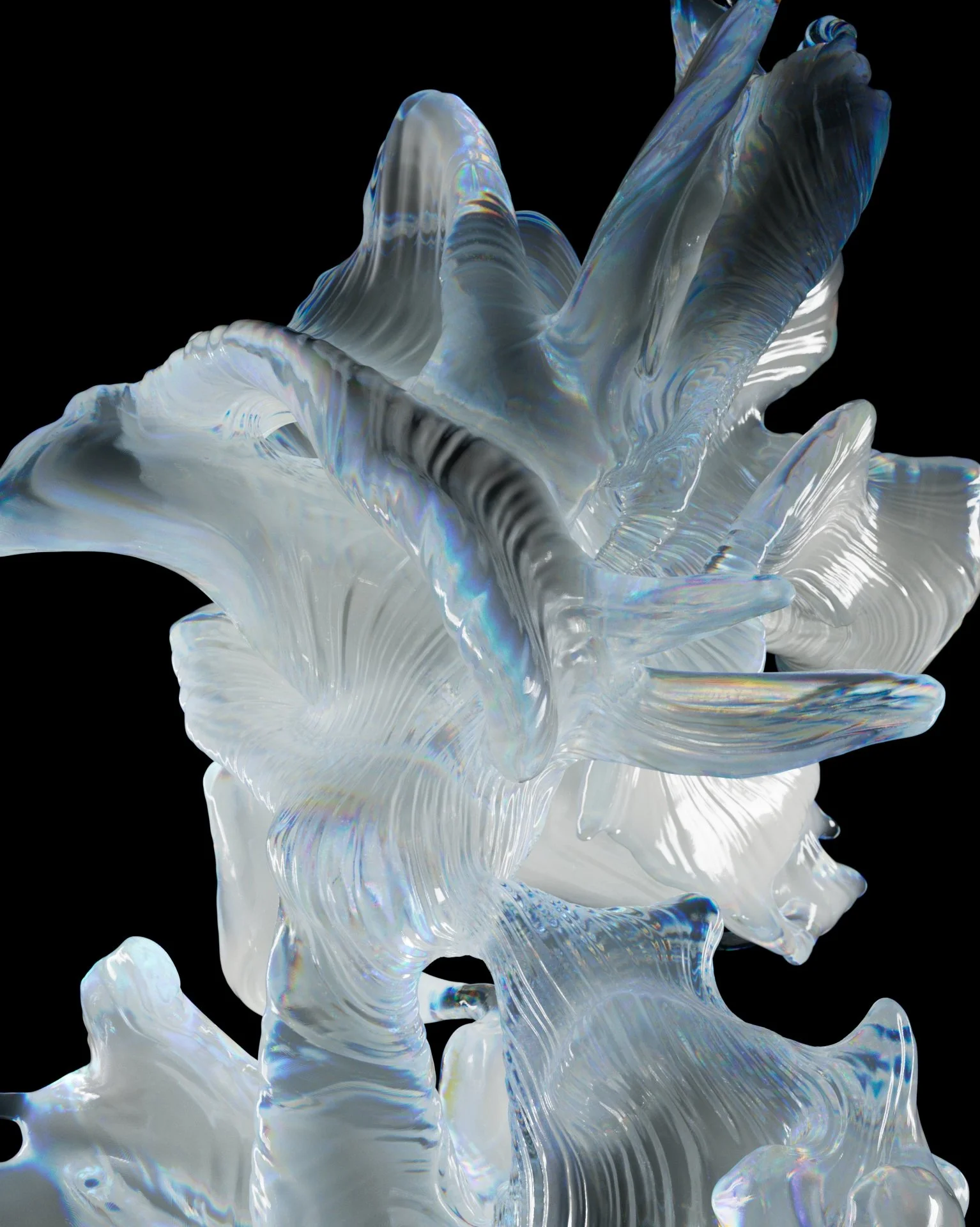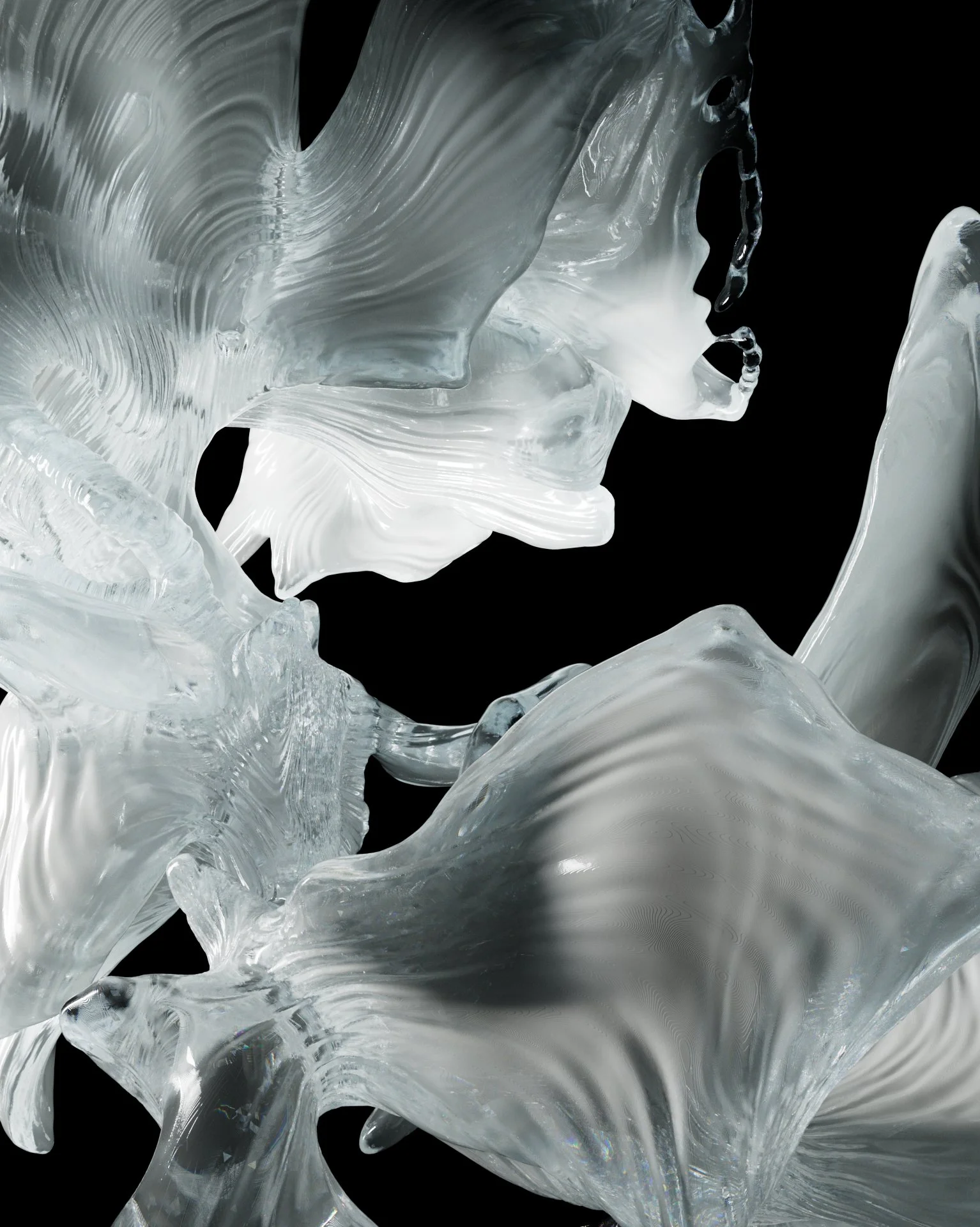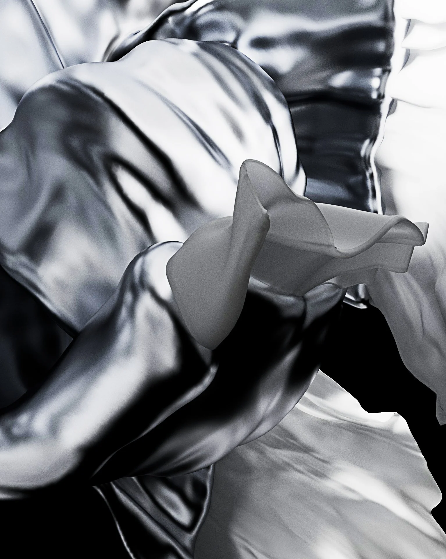 Our approach was inspired by abstract and undefined natural shapes, using forms of the design of a rare and precious object, through soft lines and rigid lines, pearls, diamonds, rubies, metals, fluid movements and mechanical elongations, we wanted to use real world physics to understand what materials could do with our technology.